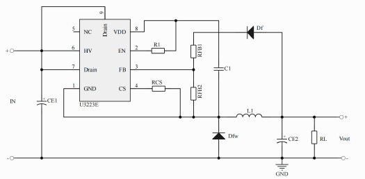 •產品描述:U3223E是一款高性能低成本PWM控制功率器,適用于離線式小功率降壓型應用場合,外圍電路簡單、器件個數少。同時產品內置高耐壓MOSFET可提高系統浪涌耐受能力。與傳統的PWM控制器不同,U3223E內部無固定時鐘驅動MOSFET,系統開關頻率隨負載(輕載、重載)變化可實現自動調節。同時芯片采用了多模式PWM控制技術,有效簡化了外圍電路設計,提升線性調整率和負載調整率并消除系統工作中的可聞噪音。此外,芯片內部峰值電流檢測閾值可跟隨實際負載情況自動調節,可以有效降低空載情況下的待機功耗。U3223E集成有完備的帶自恢復功能的保護功能:VDD欠壓保護、逐周期電流限制、輸出過壓保護、過熱保護、過載保護和VDD過壓保護等。