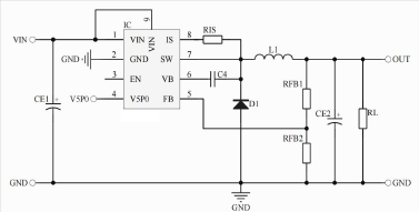 •主要特點:集成高壓啟動電路;集成5.5V基準;內置100V/135 mΩ MOSFET;內置自舉二極管;滯后控制:無補償;150 KHz開關頻率;PWM調光控制輸入降壓應用;短路保護(SCP)與集成的高側MOSFET;低靜態電流;熱關閉;可在一個ESOP-8封裝與一個暴露的墊