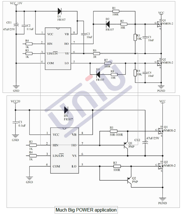 •主要特點:浮動通道設計用于引導操作,完全工作到+600V,可承受負瞬態電壓dV/dtImmune,柵極驅動供電范圍從3到20V,欠壓鎖定,3.3V, 5V和15V輸入邏輯兼容,交叉傳導防止邏輯,兩個通道匹配傳播延遲
