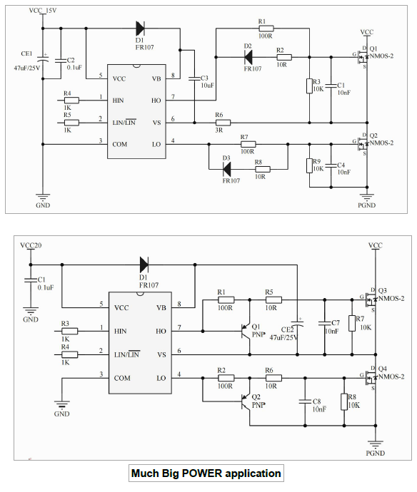 •主要特點:浮動通道設計用于引導操作;完全工作到+600V;耐受負瞬態電壓;v /dt免疫;柵極驅動供電范圍從9V(4.5V)到21V;欠壓鎖定;3.3V, 5V和15V輸入邏輯兼容