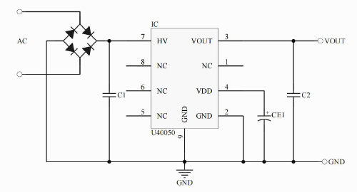 U40050 是一款緊湊型無電感設(shè)計(jì)的離線式 線 性 穩(wěn) 壓 器 。 U40050 固 定 輸 出 5V 電 壓 。 U40050是一種簡單可靠的獲得偏置供電的離線 式電源解決方案。 U40050 集成了600V 功率MOSFET ,啟動(dòng) 控制電路,VDD電壓控制電路,低壓差穩(wěn)壓器 等。該芯片通過智能控制交流能量輸入以減小系 統(tǒng)損耗,提高系統(tǒng)效率,同時(shí)有效降低系統(tǒng)待機(jī)。 U40050集成有完備的帶自恢復(fù)功能的保護(hù) 功能:輸出短路保護(hù),輸出過載保護(hù),雷擊浪涌 保護(hù)和內(nèi)置過溫保護(hù)等。