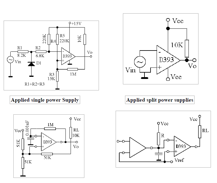 U393由兩個獨立的電壓比較器組成,其失調電壓規格低至最大2.0 mv。兩個比較器,專門設計用于在寬電壓范圍內從單個電源運行。從分離電源操作也是可能的,并且低電源電流損耗與電源電壓的大小無關。這些比較器還具有一個獨特的特性,即輸入共模電壓范圍包括接地,即使是在單一電源電壓下工作。